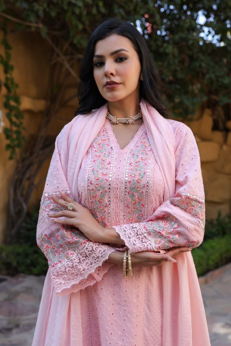 Elegant embroidered cotton suit set, perfect for everyday wear and special occasions