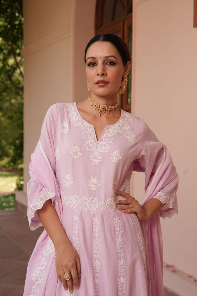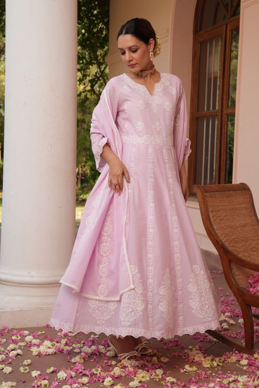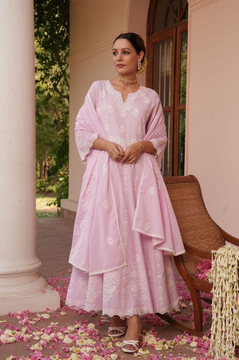 Anarkali Suit*: This three-piece Indian outfit features beautiful resham thread and sequence work embroidery