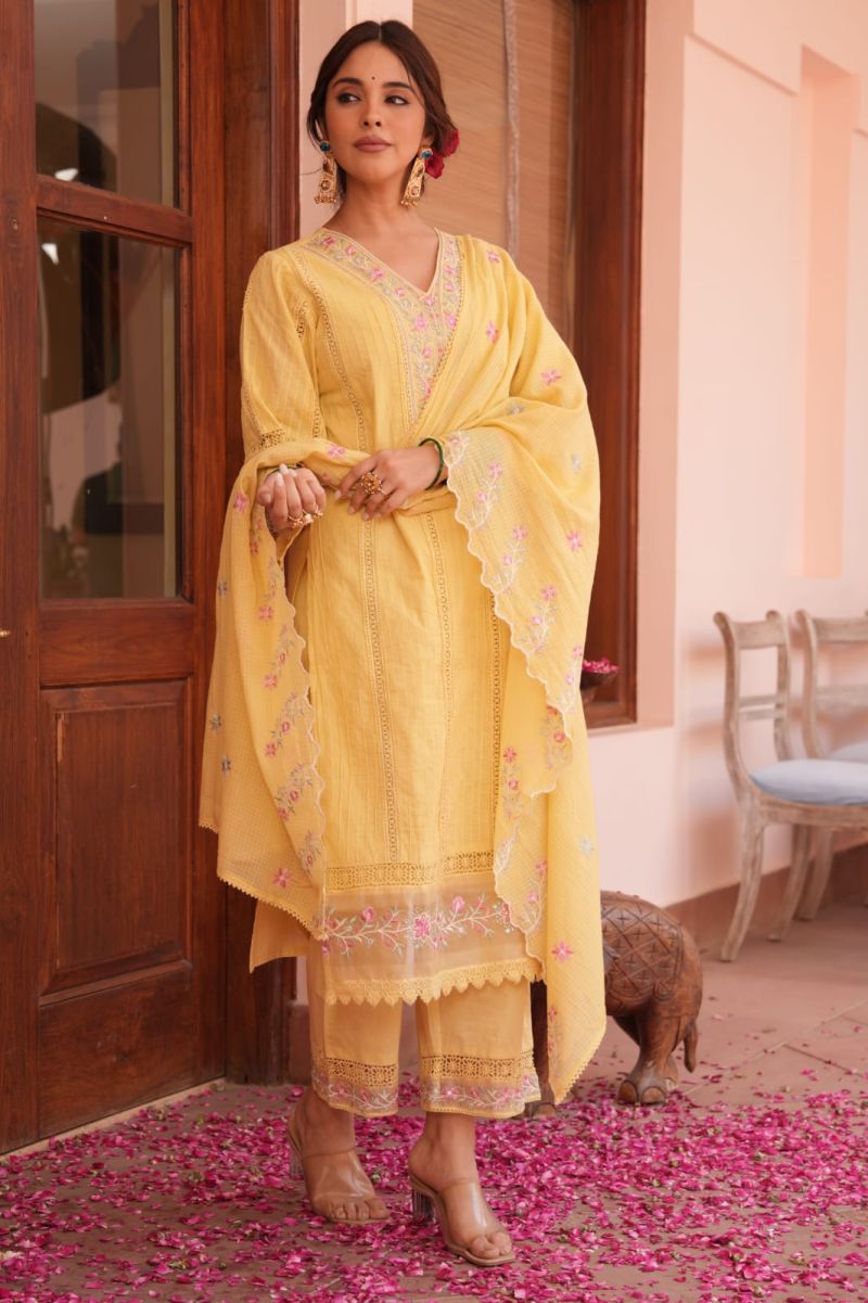 Elevate your everyday style with our Cotton Straight Kurta Set, featuring a comfortable kurta, pant, and dupatta. Soft cotton fabric, classic design, and effortless elegance make this set perfect for daily wear or casual gatherings.