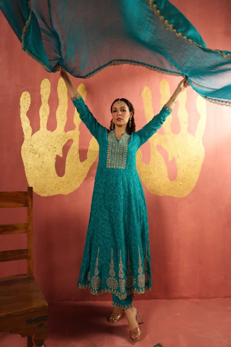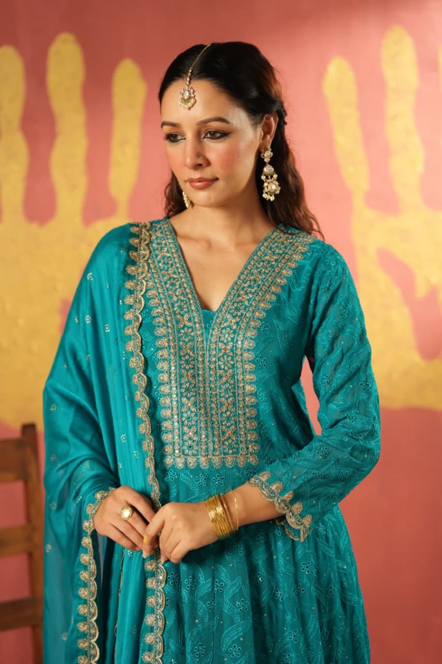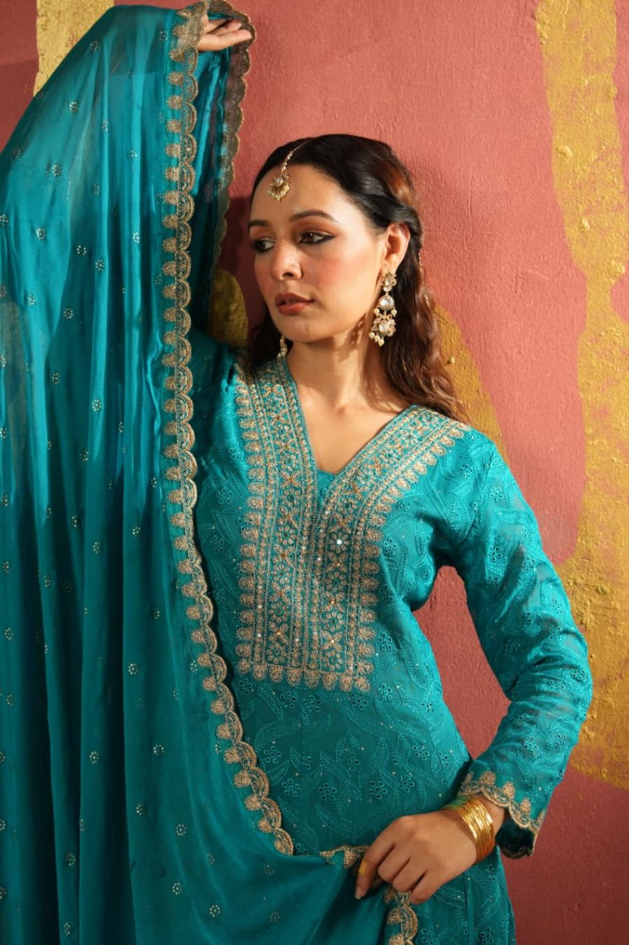 pretty Georgette kurti set features lightweight, flowy fabric with beautiful designs, embroidery, or prints. It often includes a matching dupatta and pants or bustier and pant set, perfect for festive gatherings, weddings, or traditional events. Available in various colors, sizes, and styles, such as Anarkali or classic kurti sets