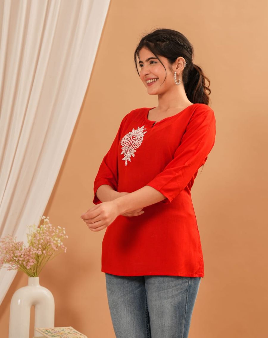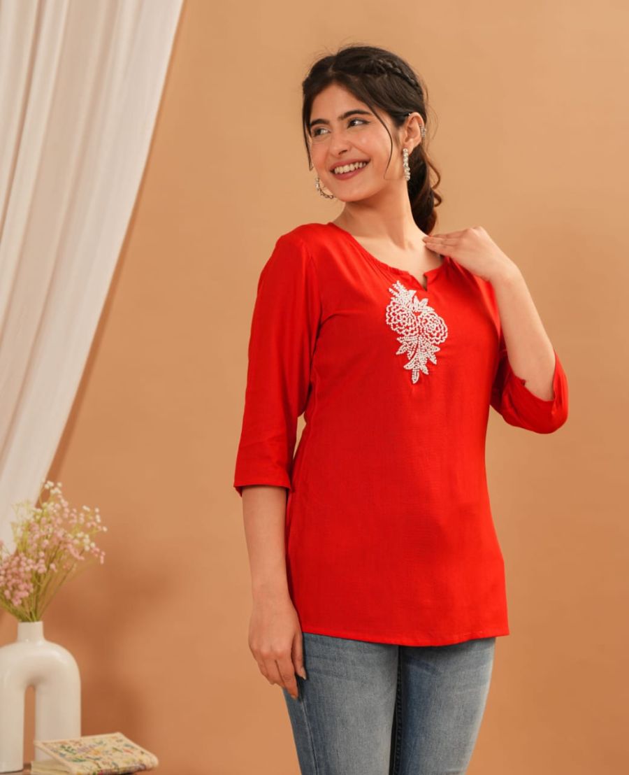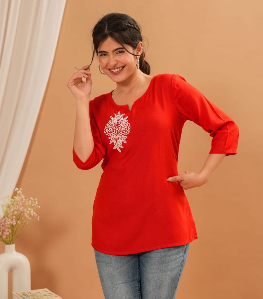 Rayon Fabric Short Kurti for Daily Wear