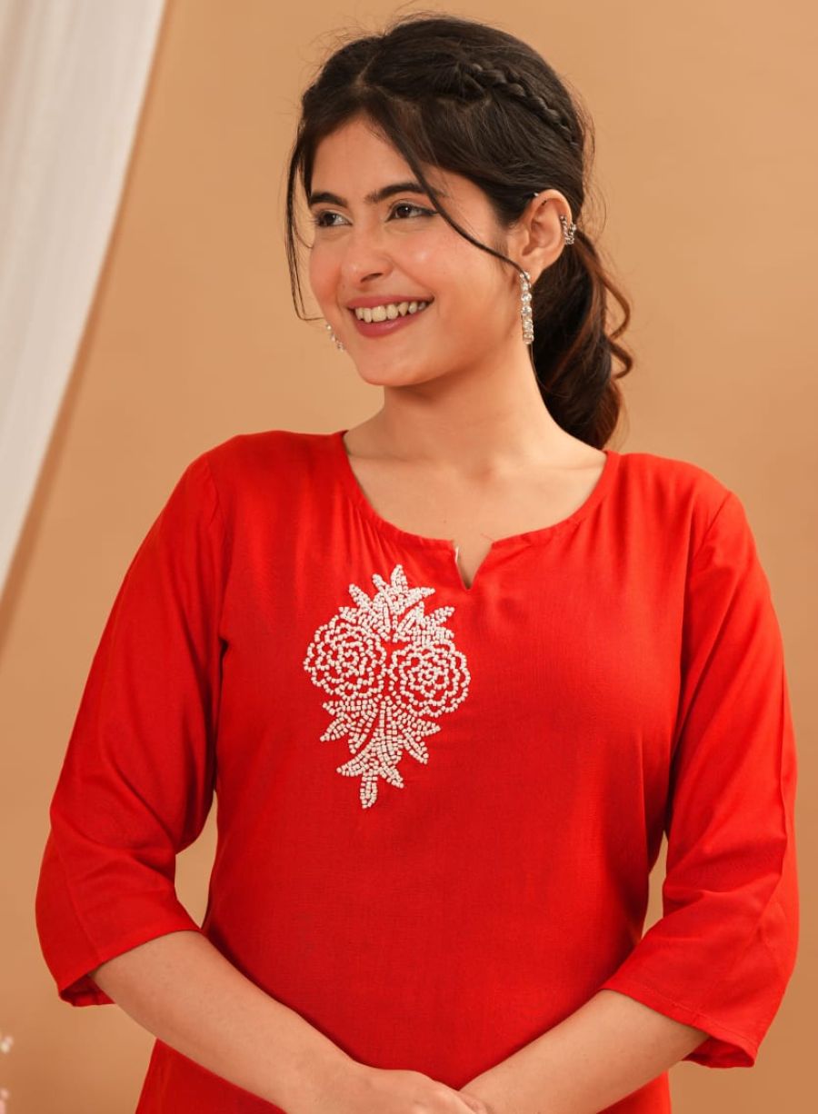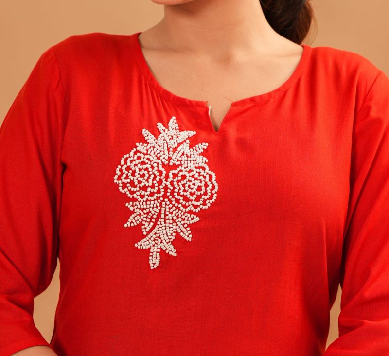 A rayon fabric short kurti is a stylish and comfortable choice for daily wear. Lightweight and breathable, rayon offers a soft texture that drapes beautifully, making it ideal for casual outings or office wear. These kurtis often feature trendy cuts, vibrant prints, and elegant designs, providing both comfort and style for everyday dressing